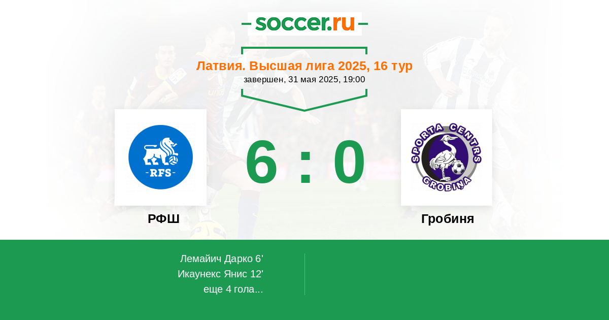 Протокол матча РФШ против Гробиня