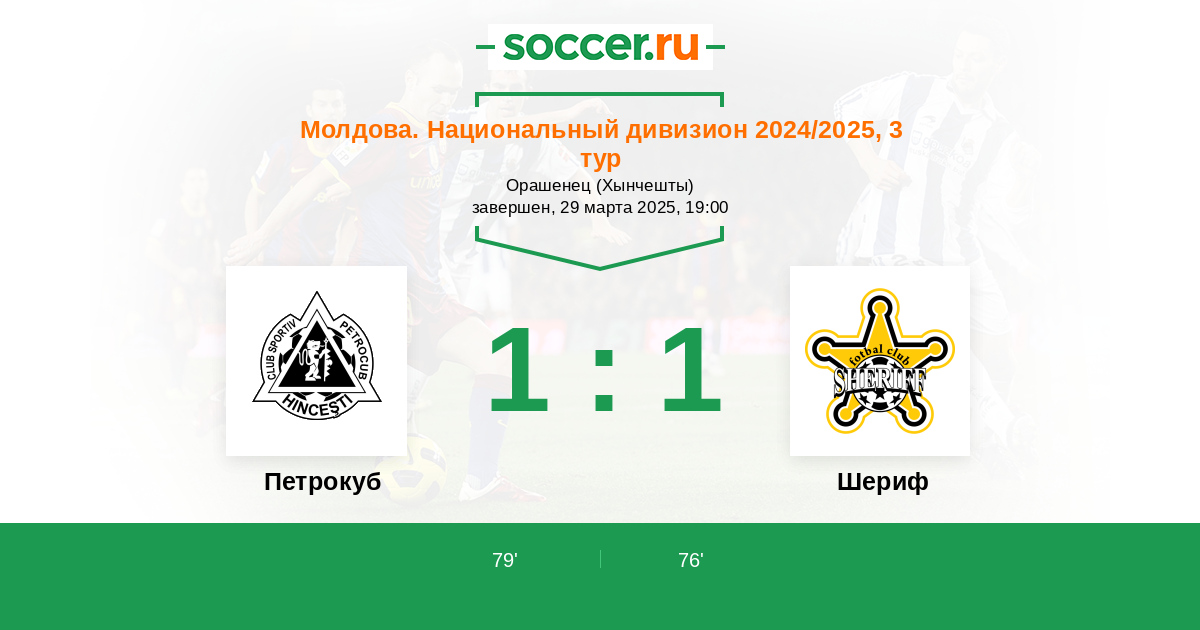 Протокол матча Петрокуб против Шериф