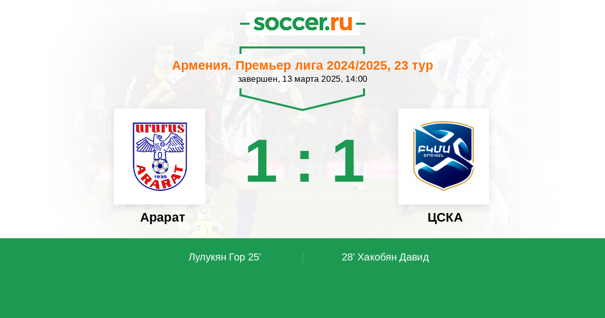 Протокол матча Арарат против ЦСКА