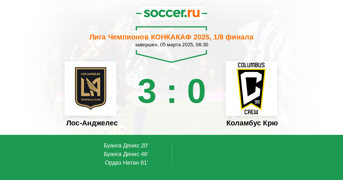 Протокол матча Лос-Анджелес против Коламбус Крю