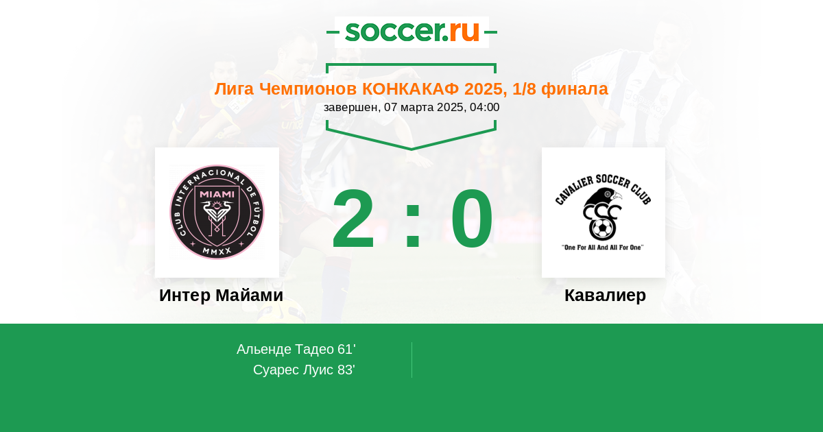 61' (1:0) Альенде Тадео (21) (Бускетс Серхио (5))