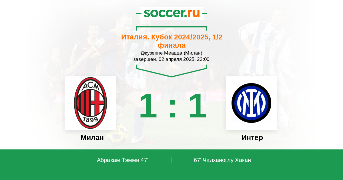 Протокол матча Милан против Интер