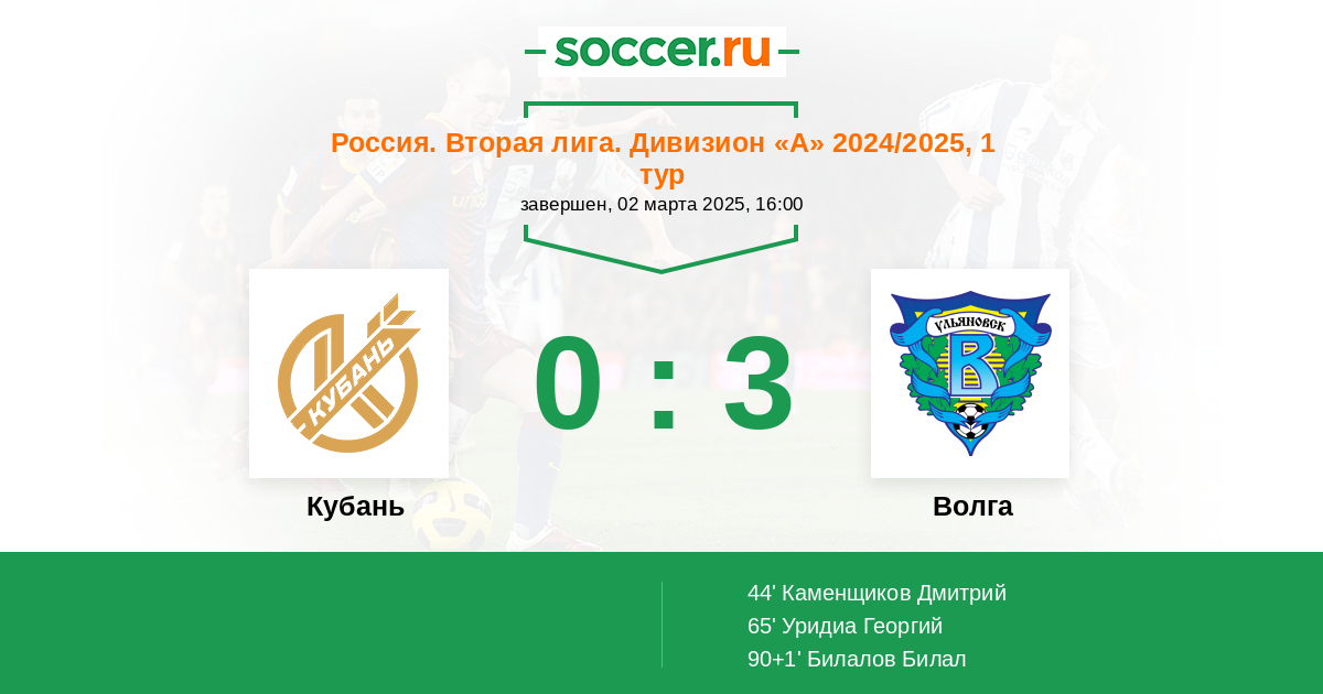 Протокол матча Кубань против Волга
