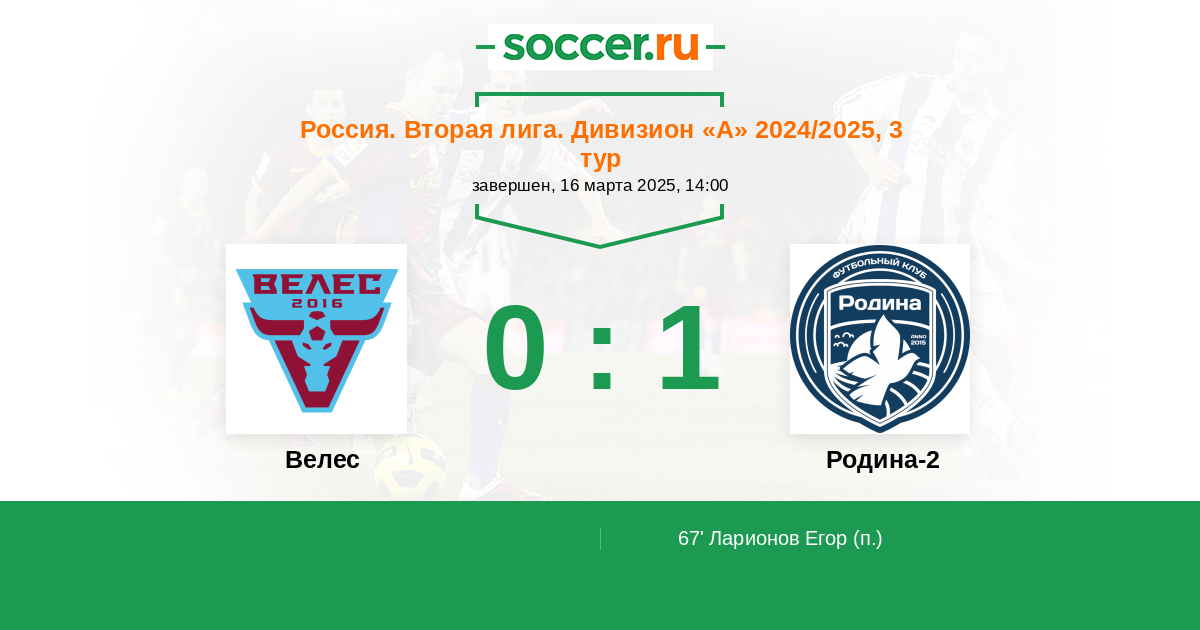 Протокол матча Велес против Родина-2