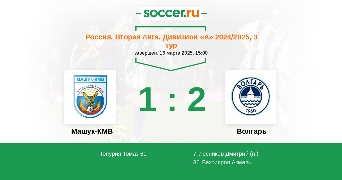 Протокол матча Машук-КМВ против Волгарь