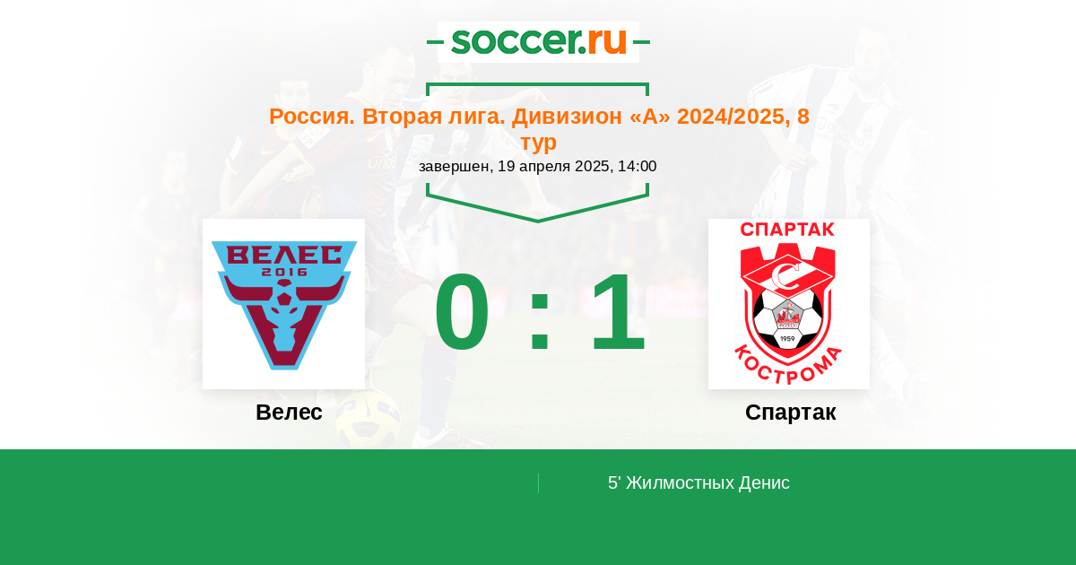 Протокол матча Велес против Спартак Кострома