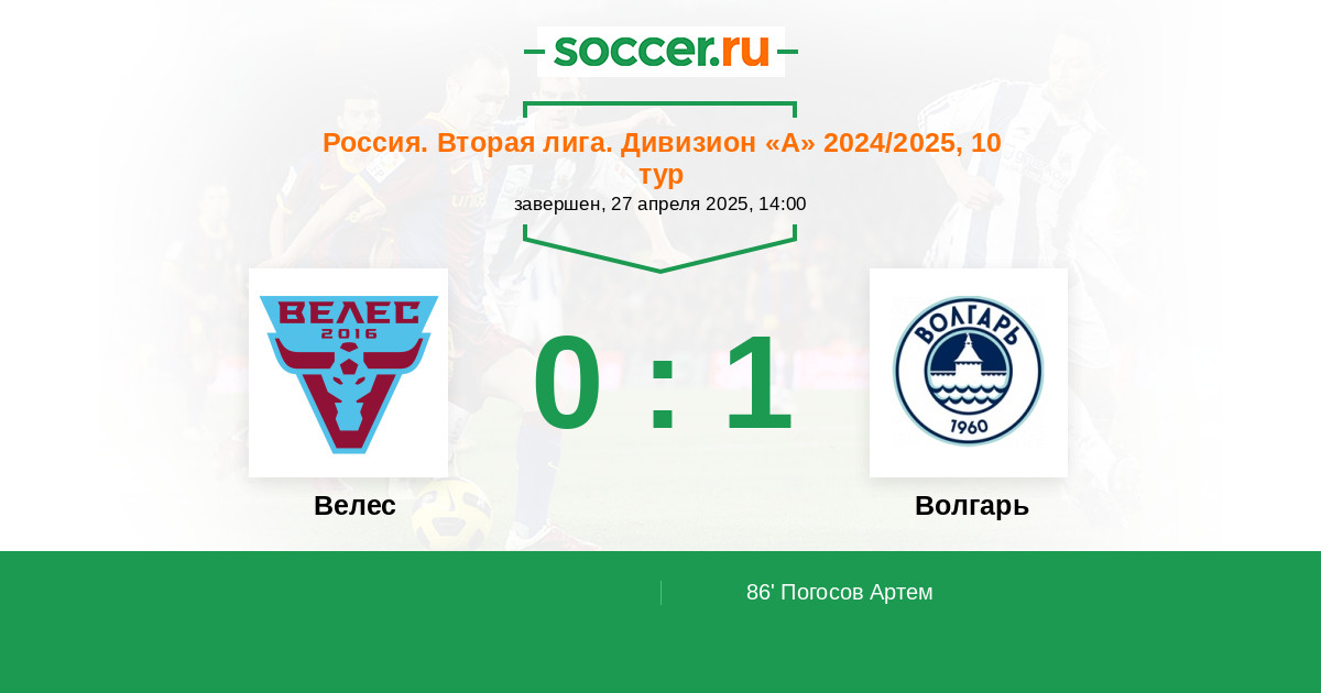 Протокол матча Велес против Волгарь