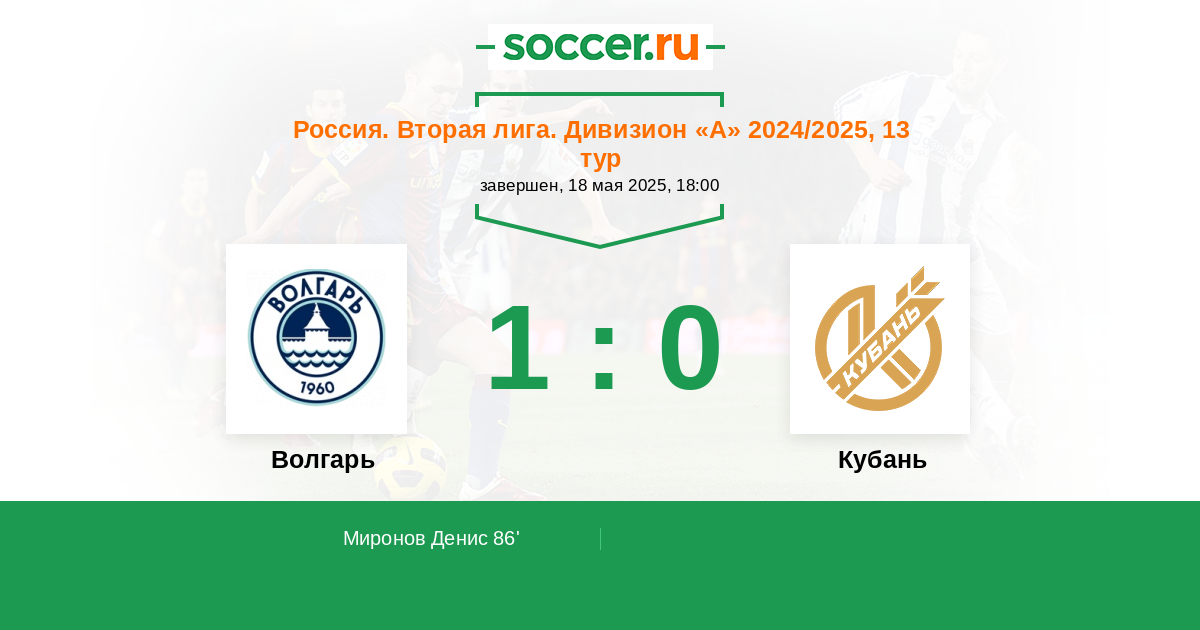 Протокол матча Волгарь против Кубань