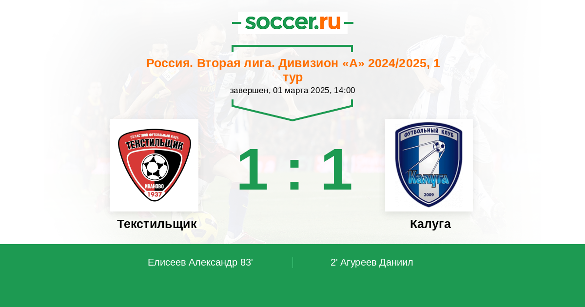 Протокол матча Текстильщик против Калуга