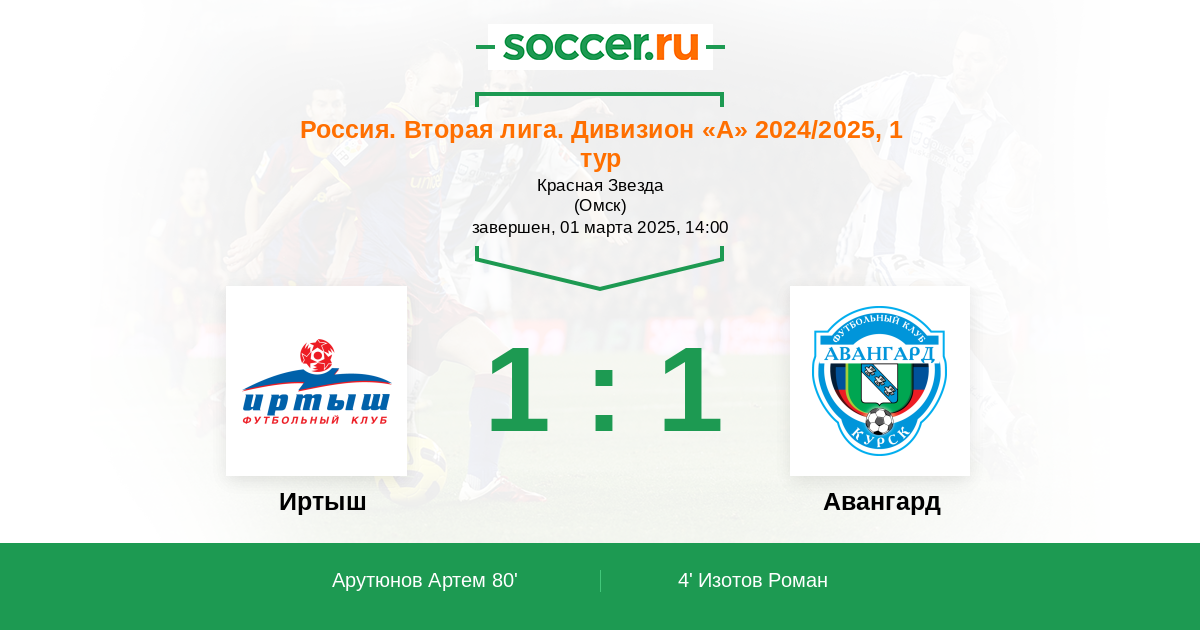 Протокол матча Иртыш против Авангард