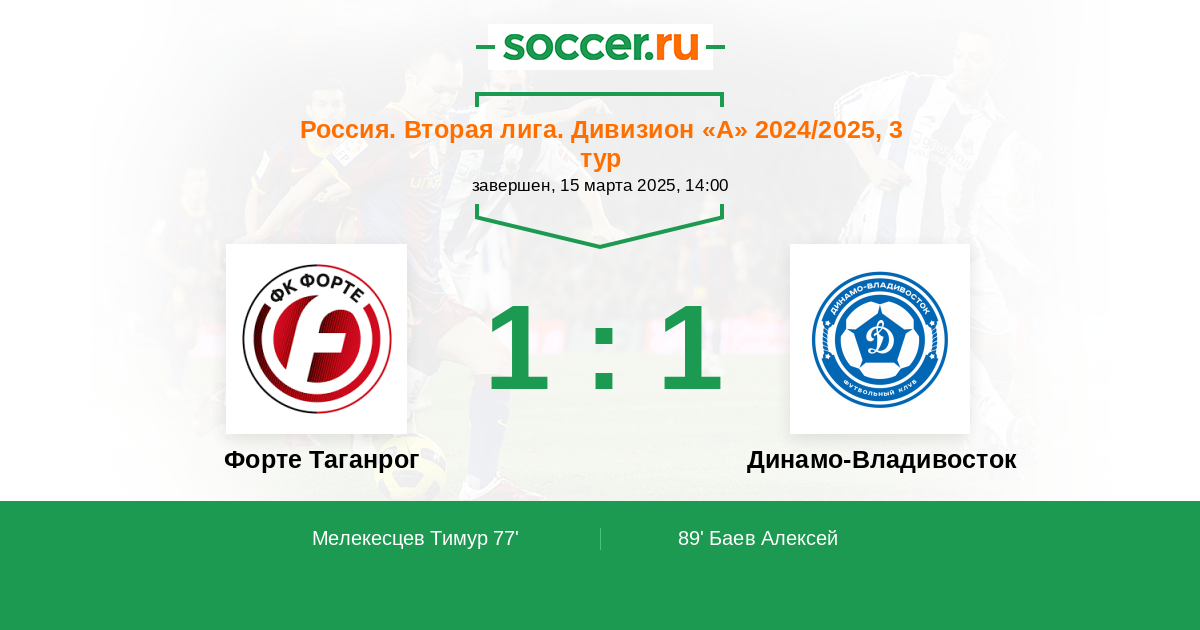 Протокол матча Форте Таганрог против Динамо Владивосток