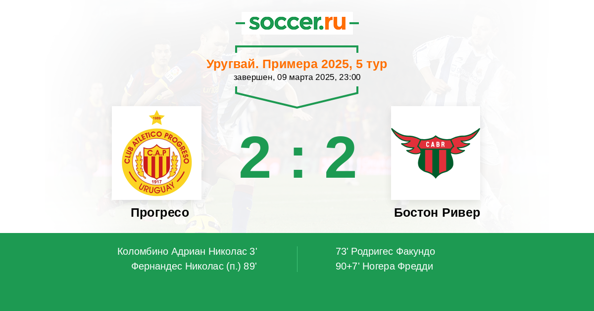 Протокол матча Прогресо против Бостон Ривер