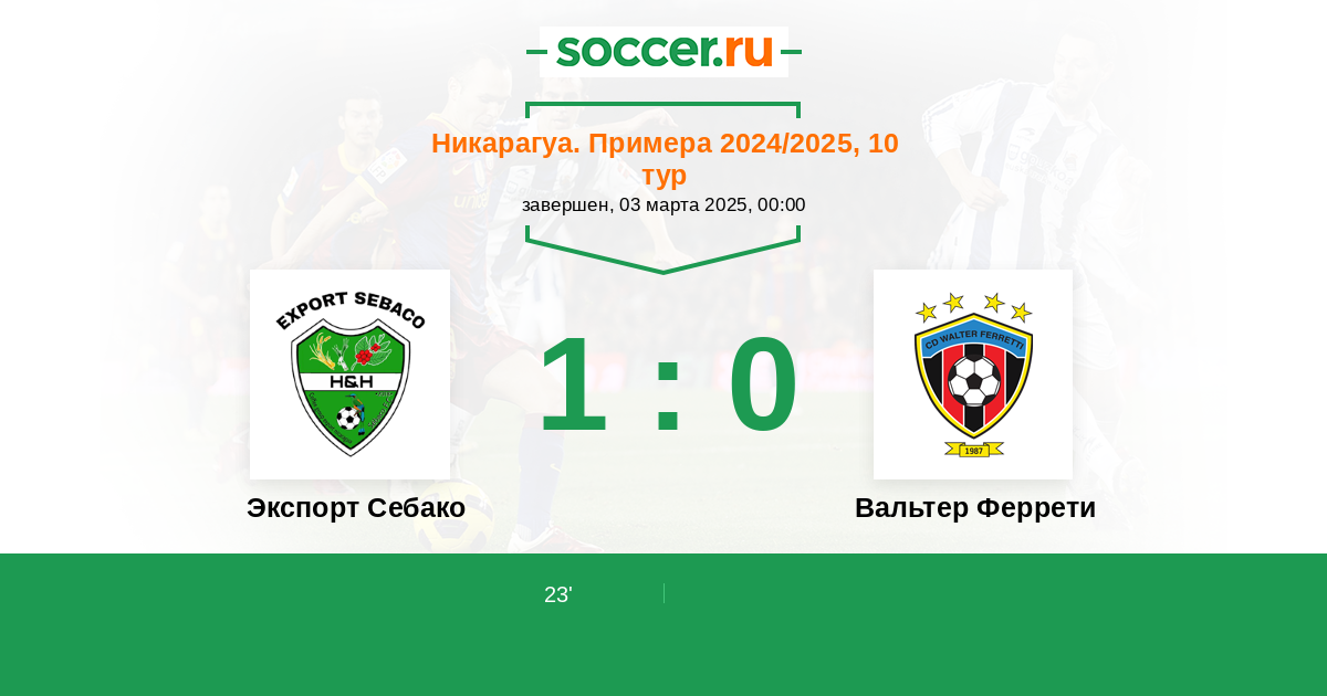 Протокол матча Экспорт Себако против Вальтер Феррети