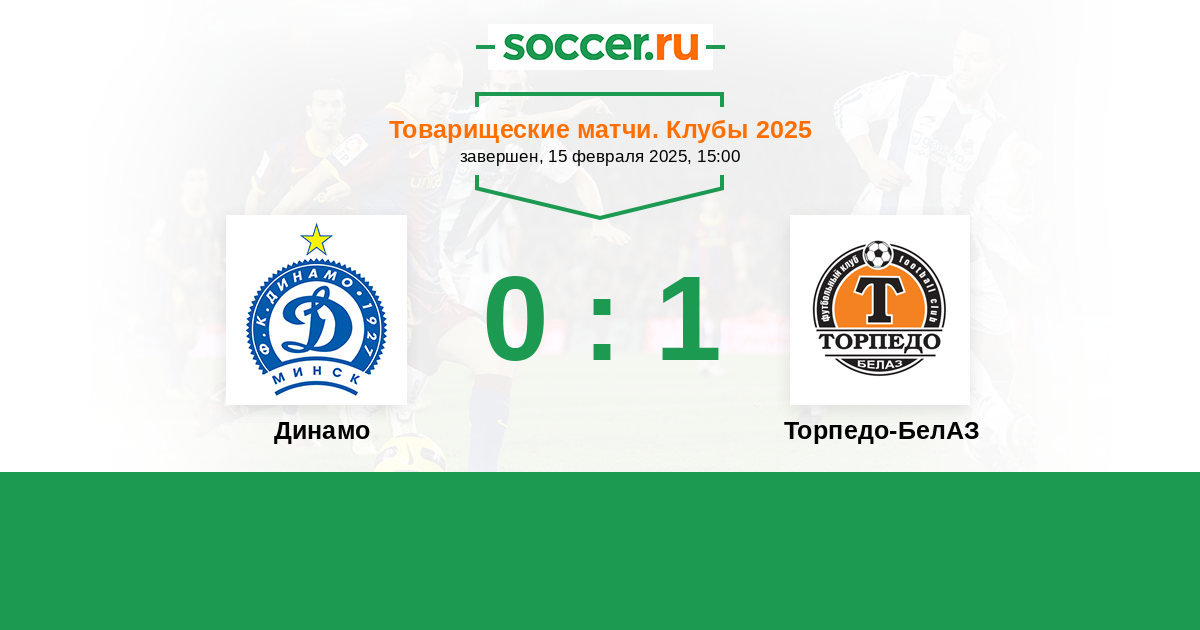 Беларусь. Высшая лига 13.03.2021 Динамо Логотип футбольный клуб Динамо (Минск) 3:0 Логотип футбольный клуб Торпедо-БелАЗ (Жодино) Торпедо-БелАЗ