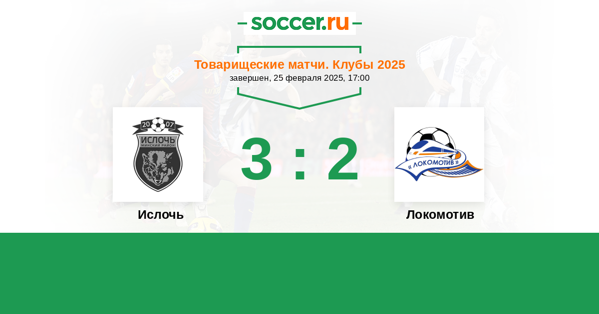 Товарищеские матчи. Клубы 11.03.2023 Ислочь Логотип футбольный клуб Ислочь (Минск) 3:1 Логотип футбольный клуб Локомотив (Гомель) Локомотив