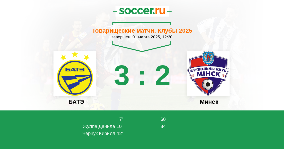 Протокол матча БАТЭ против Минск