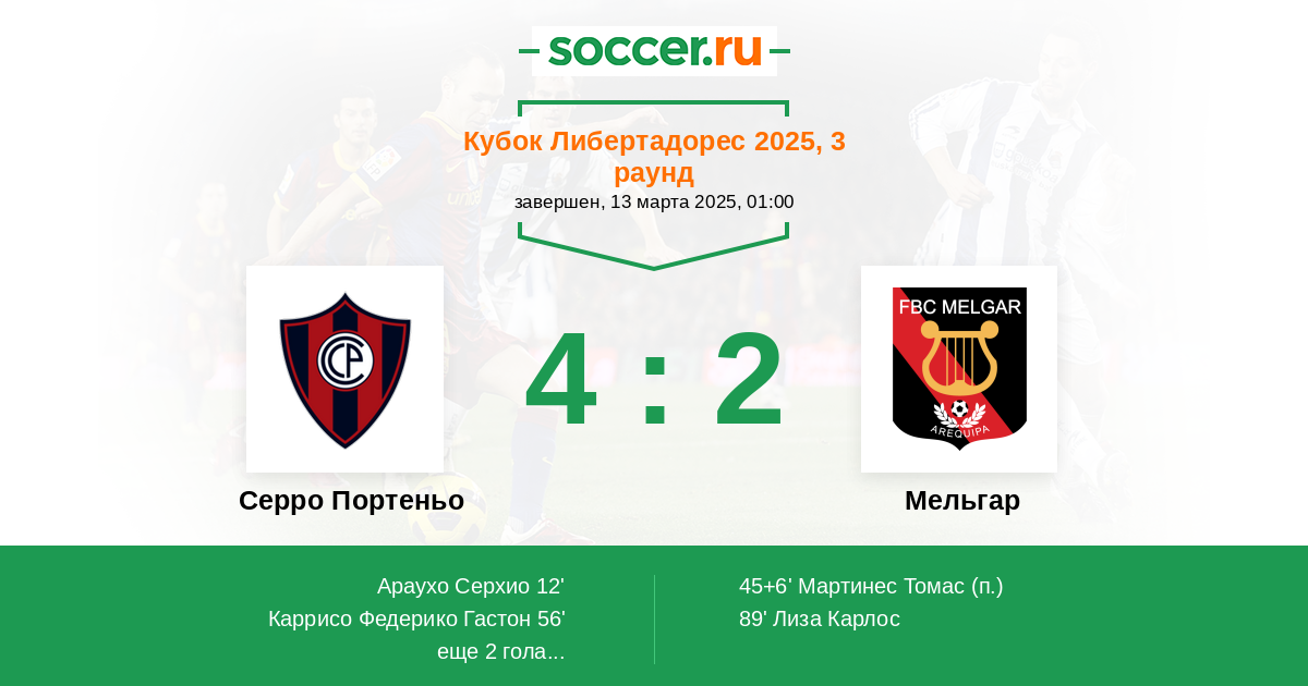 Протокол матча Серро Портеньо против Мельгар