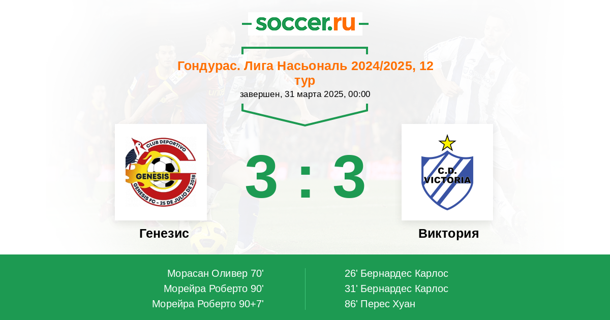 Протокол матча Генезис против Виктория
