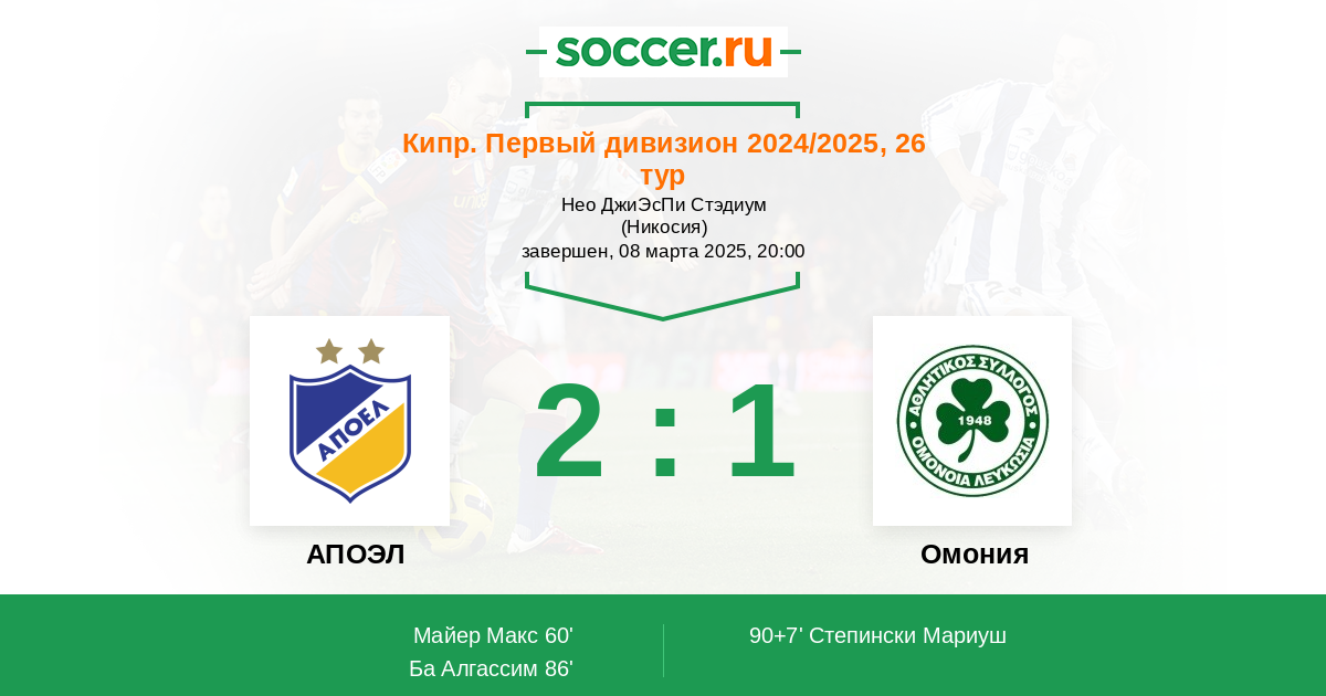 Протокол матча АПОЭЛ против Омония