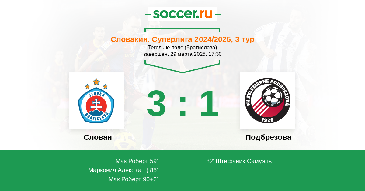 82' (1:1) Штефаник Самуэль (26)