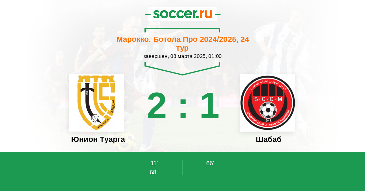 Протокол матча Юнион Туарга против Шабаб