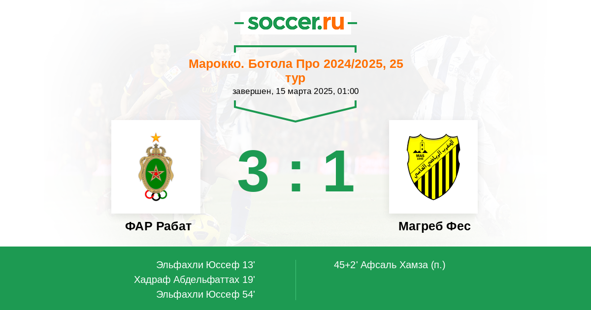 54' (3:1) Эльфахли Юссеф (Хадраф Абдельфаттах (40))
