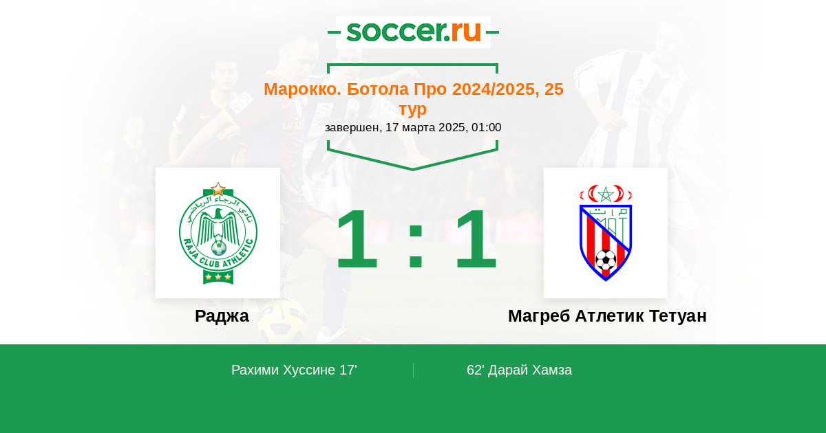 Протокол матча Раджа против Магреб Атлетик Тетуан