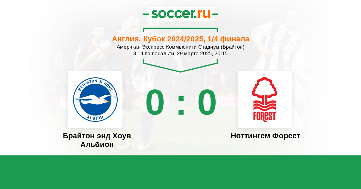 Протокол матча Брайтон энд Хоув Альбион против Ноттингем Форест