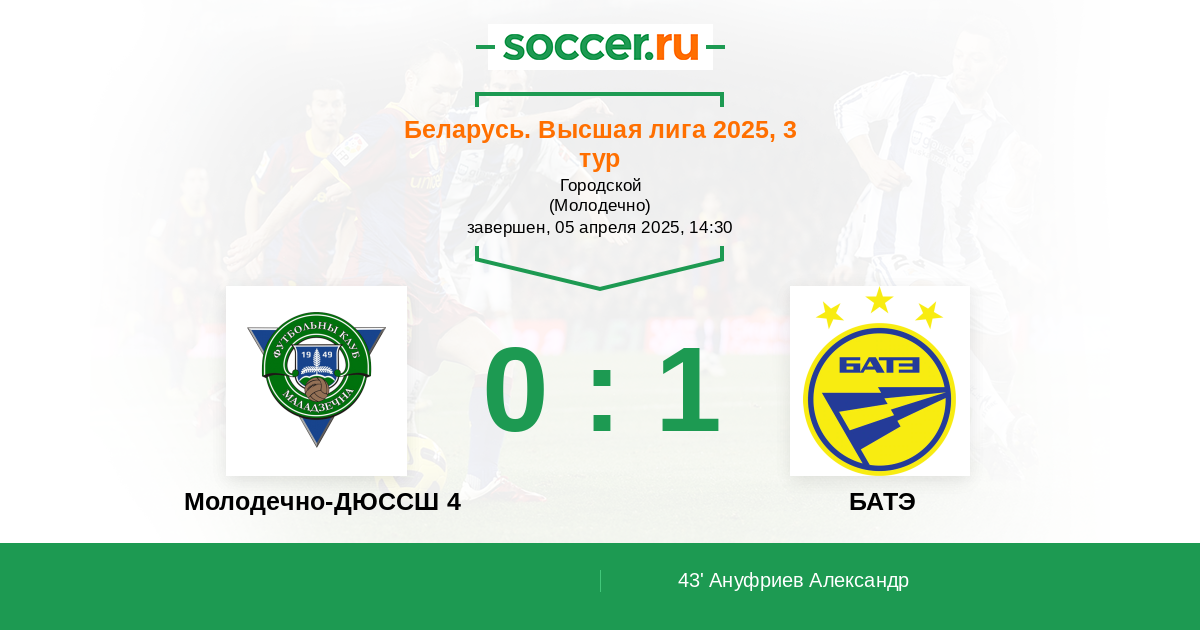 Протокол матча Молодечно-ДЮССШ 4 против БАТЭ