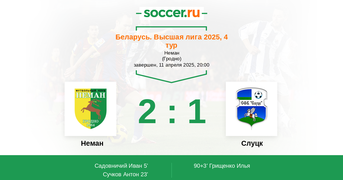 Протокол матча Неман против Слуцк