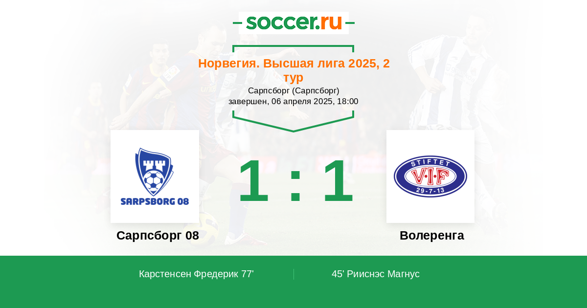 Протокол матча Сарпсборг 08 против Волеренга