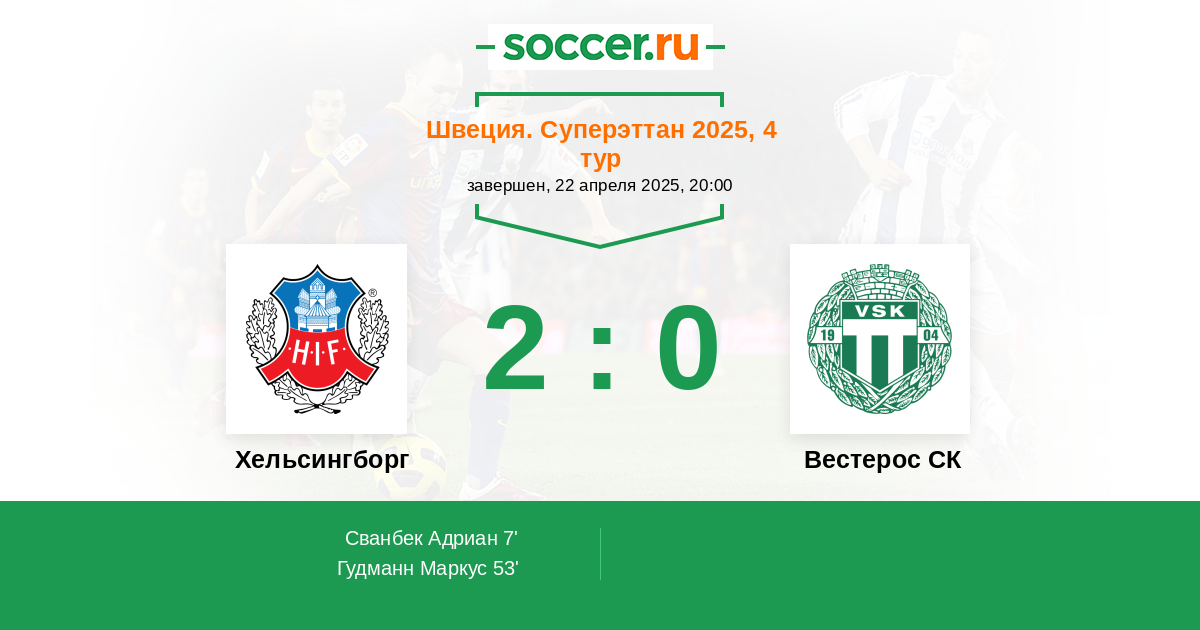 53' (2:0) Гудманн Маркус (4) (Биркфельдт Джон (2))