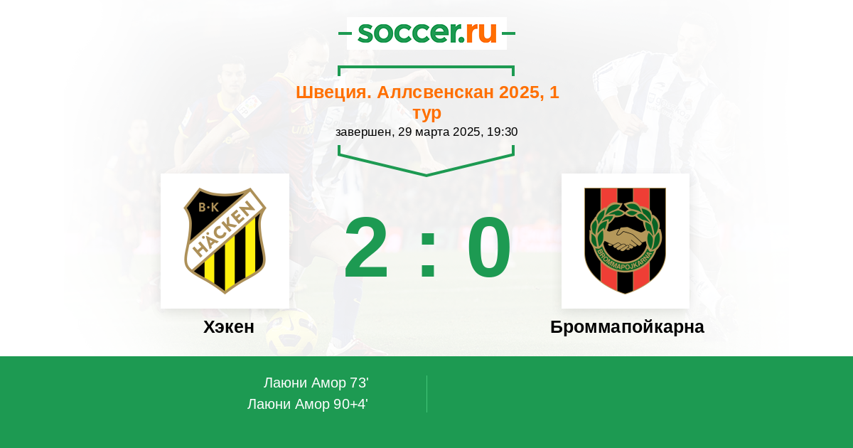 Протокол матча Хэкен против Броммапойкарна