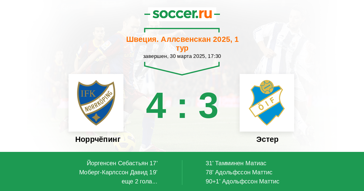 Протокол матча Норрчёпинг против Эстер