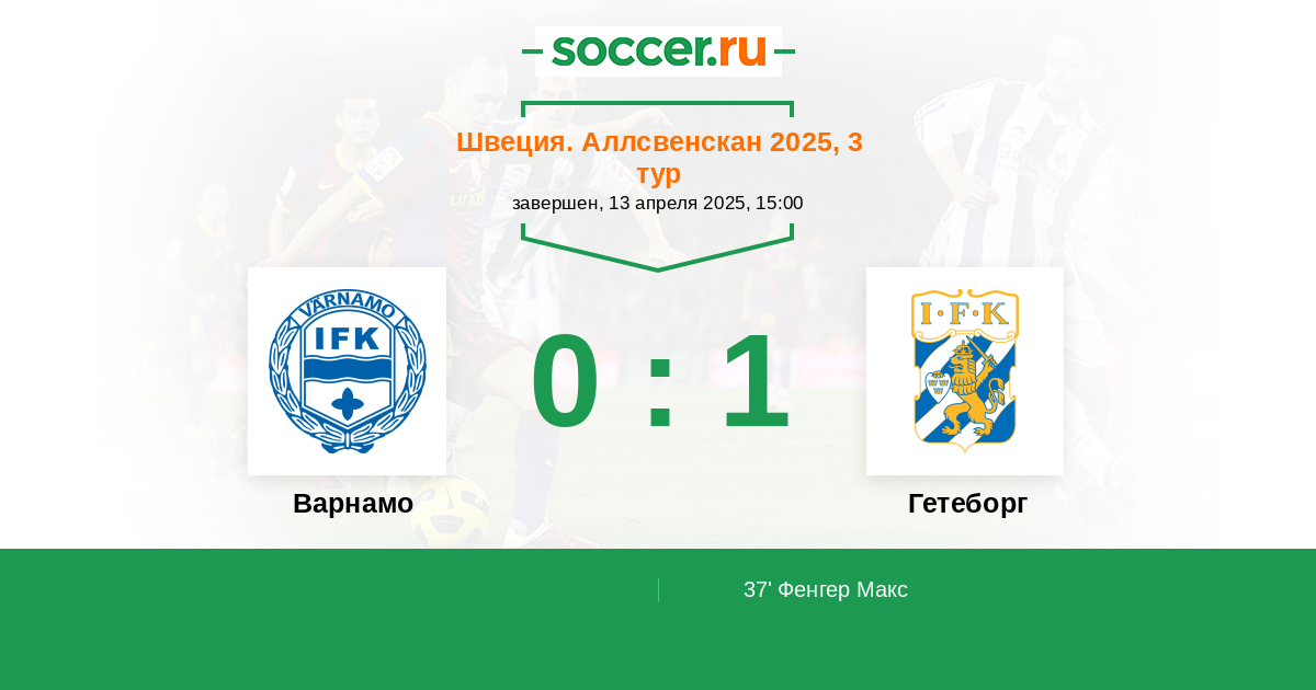37' (0:1) Фенгер Макс (9) (Лундквист Рамон-Паскаль (30))