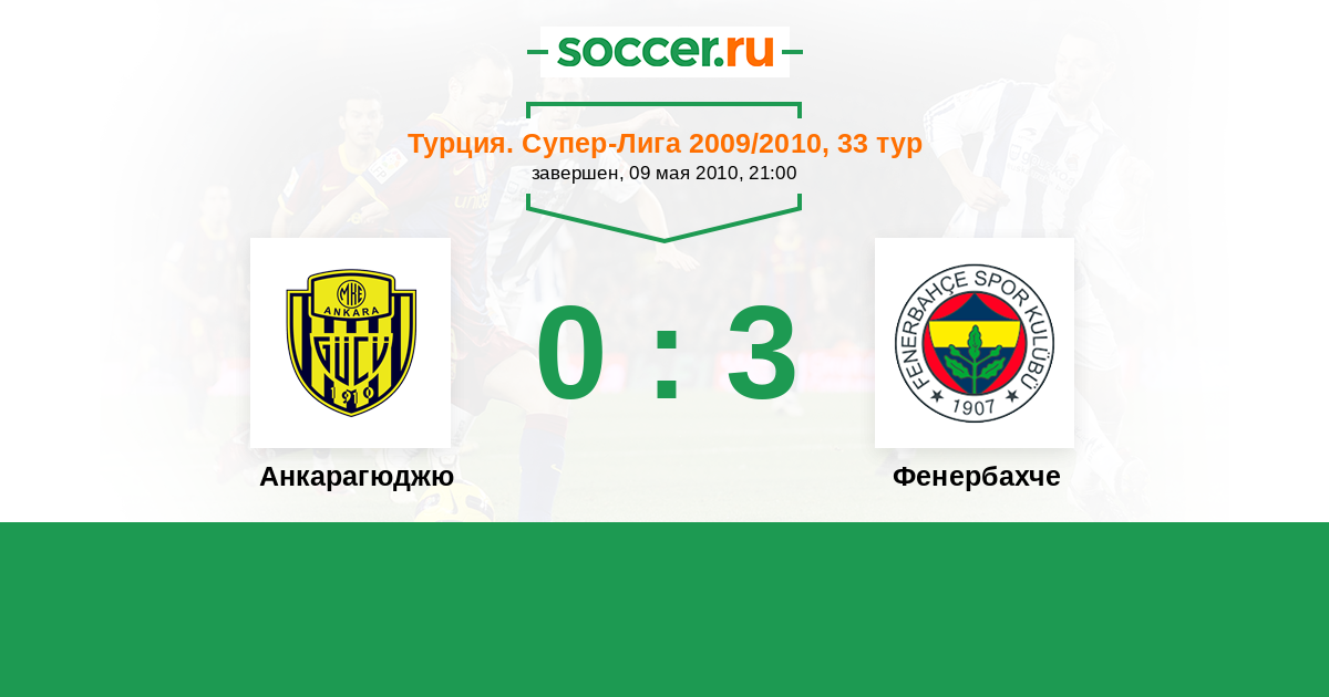 Турция. Суперлига 12.12.2009 Фенербахче Логотип футбольный клуб Фенербахче (Стамбул) 3:2 Логотип футбольный клуб Анкарагюджю Анкарагюджю