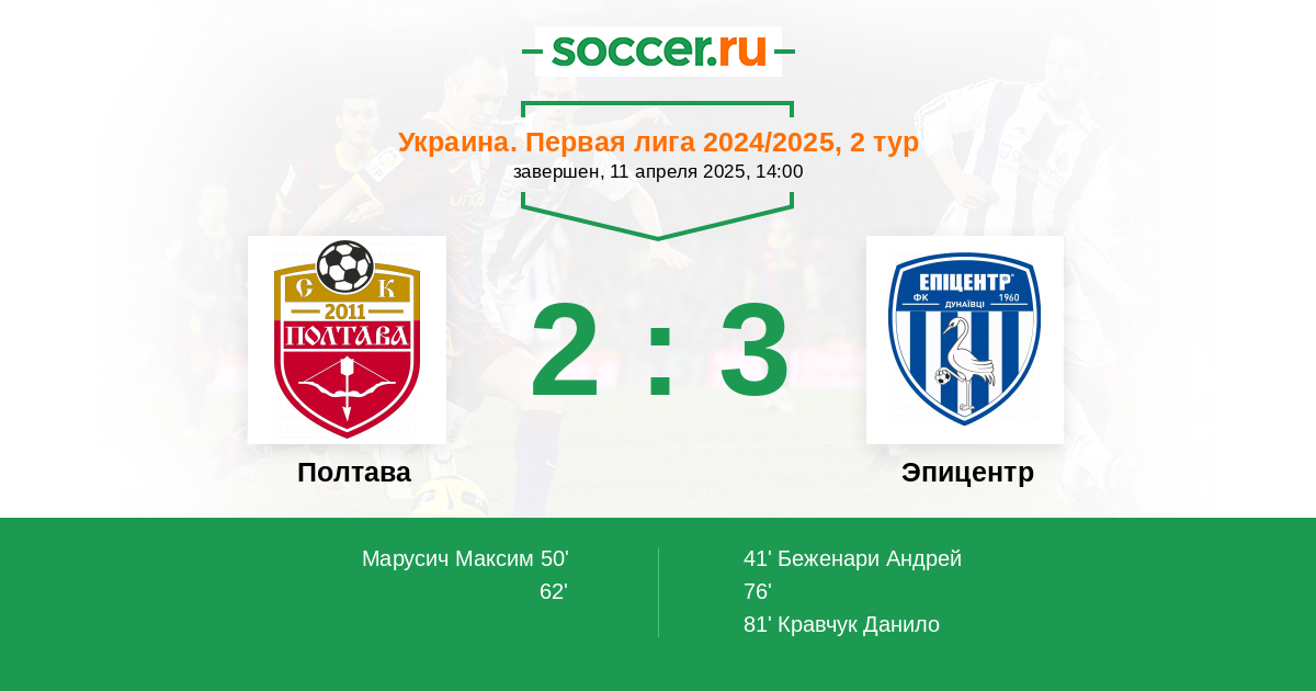 Протокол матча Полтава против Эпицентр