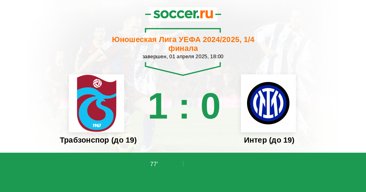 Протокол матча Трабзонспор (до 19) против Интер (до 19)
