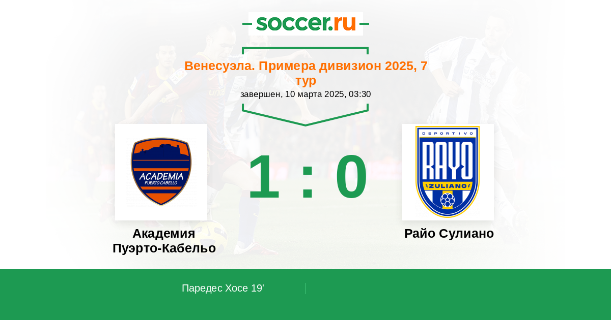 Протокол матча Пуэрто-Кабельо против Райо Зулиано
