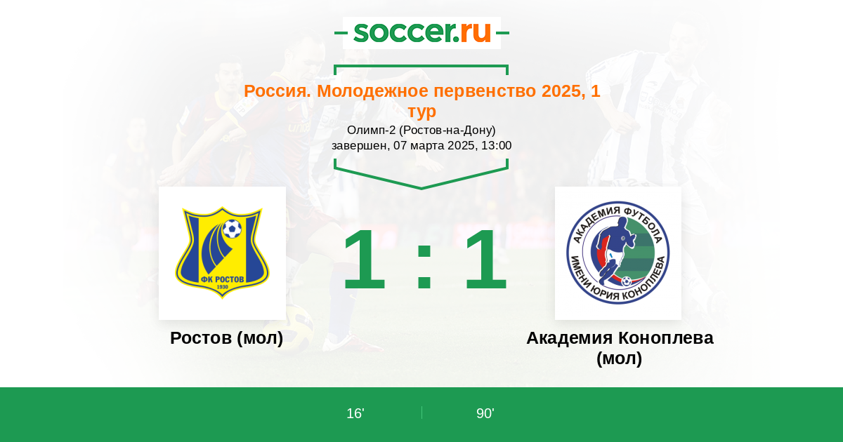 Протокол матча Ростов (мол) против Академия Коноплева (мол)