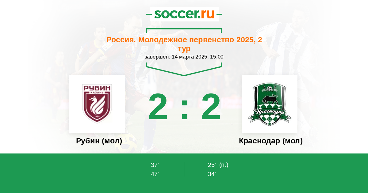 Протокол матча Рубин (мол) против Краснодар (мол)