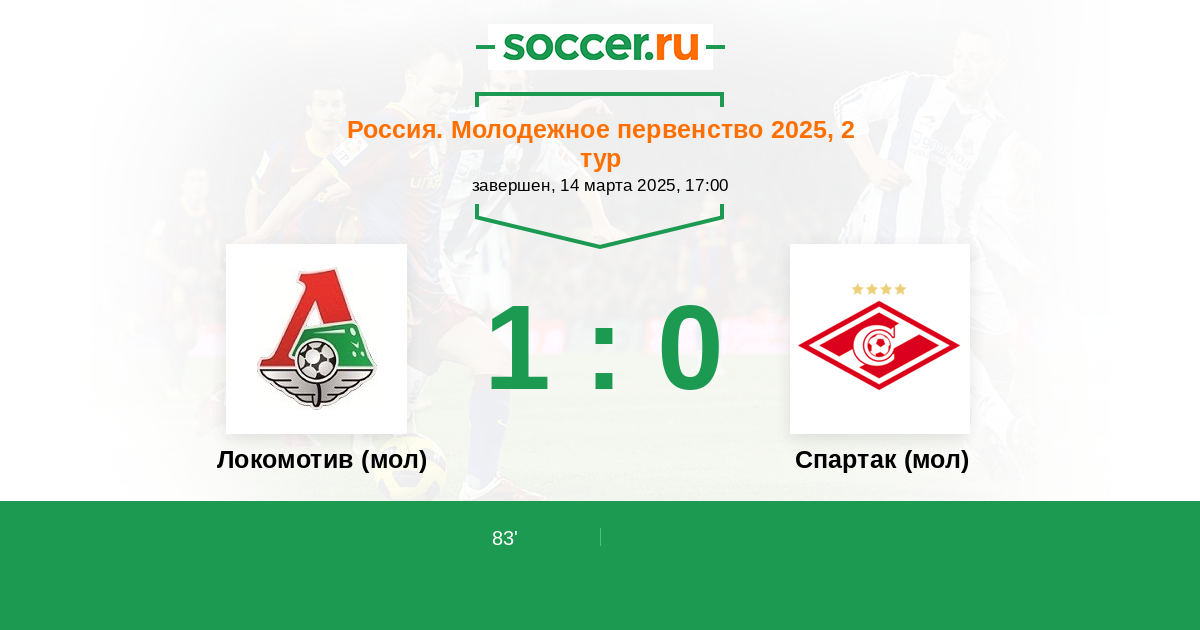 Протокол матча Локомотив (мол) против Спартак (мол)