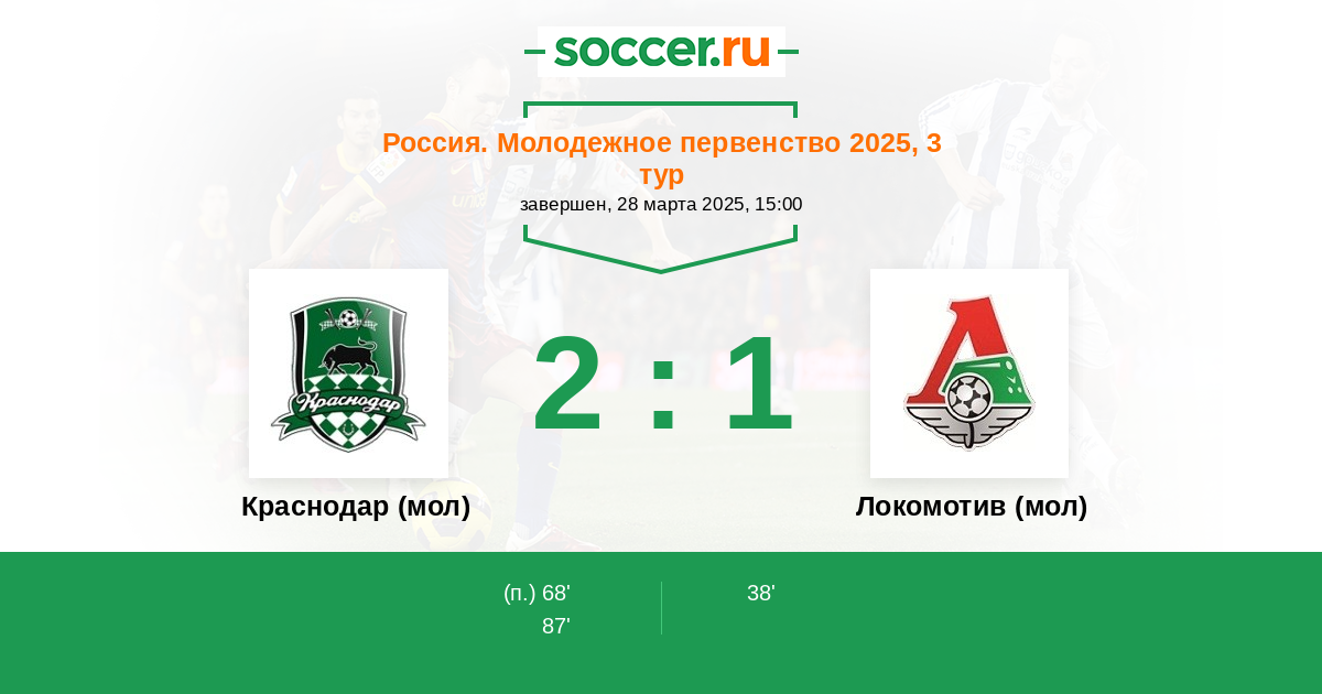 Протокол матча Краснодар (мол) против Локомотив (мол)