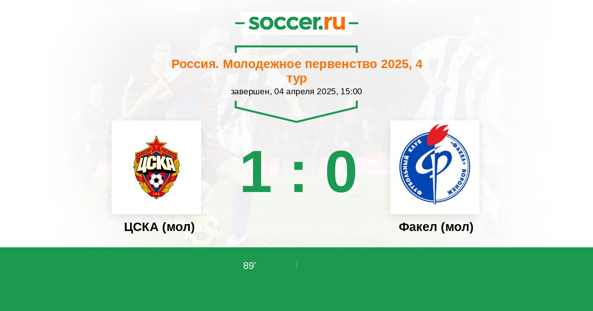 Протокол матча ЦСКА (мол) против Факел (мол)