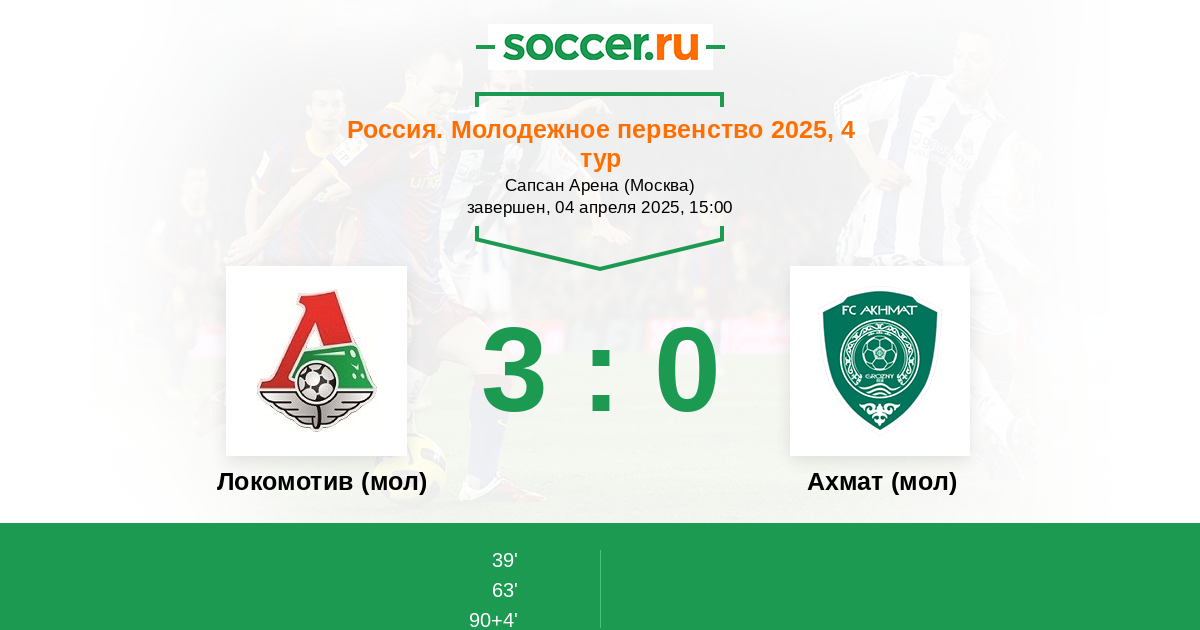 Протокол матча Локомотив (мол) против Ахмат (мол)