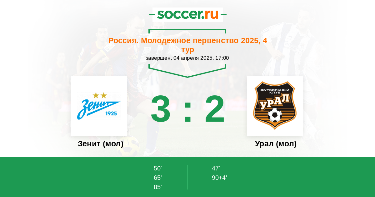 Протокол матча Зенит (мол) против Урал (мол)