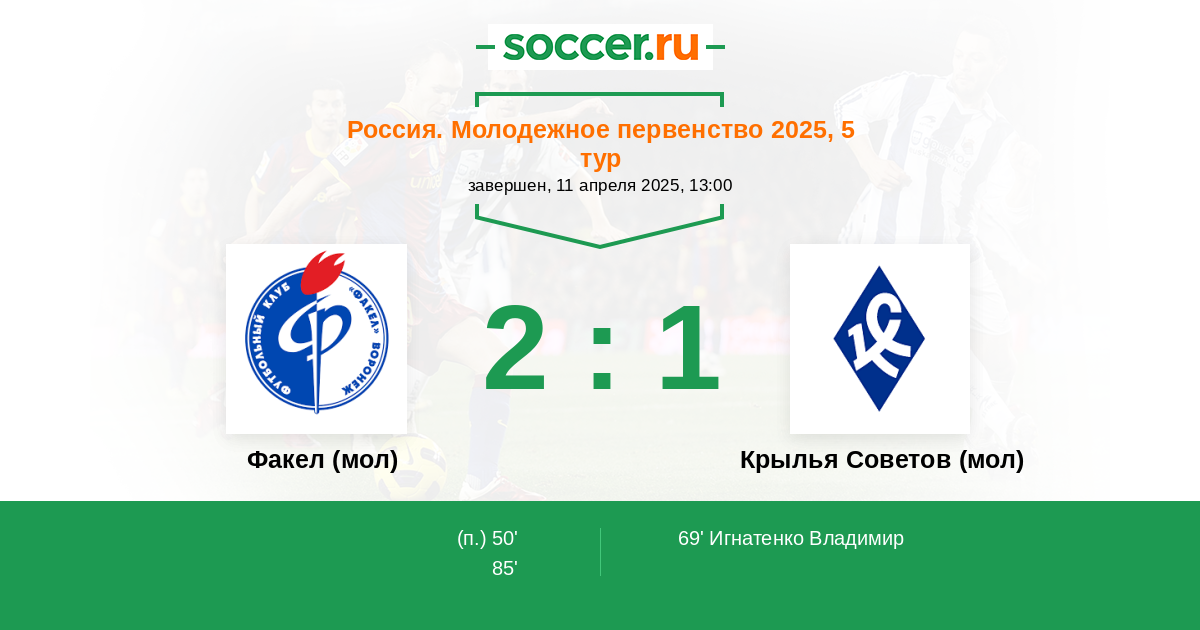 Протокол матча Факел (мол) против Крылья Советов (мол)