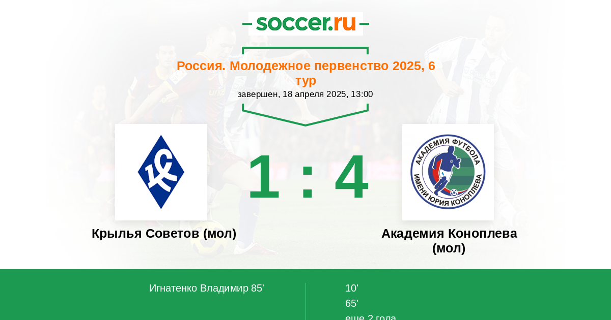 Протокол матча Крылья Советов (мол) против Академия Коноплева (мол)