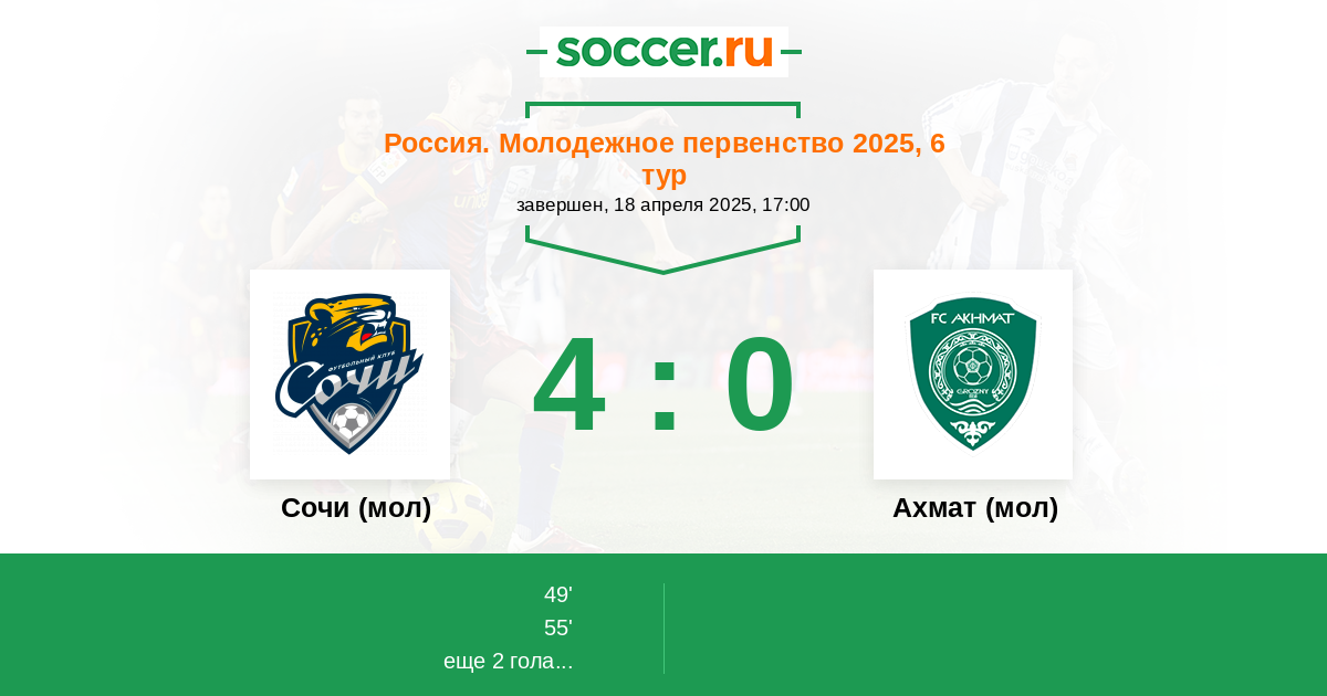 Протокол матча Сочи (мол) против Ахмат (мол)