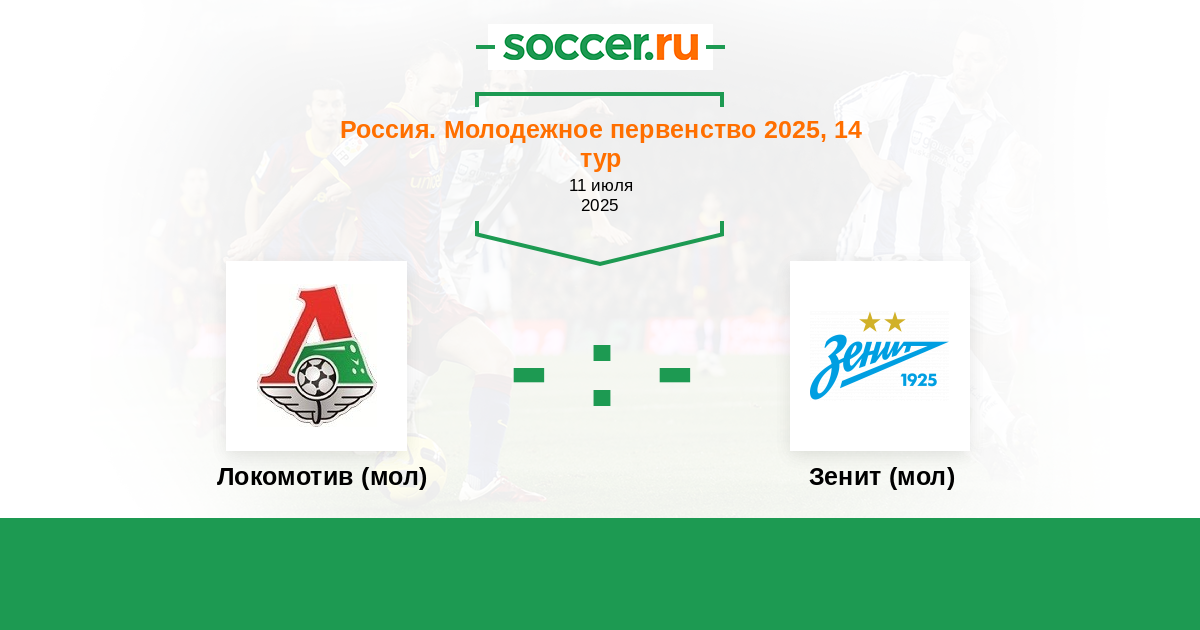 Протокол матча Локомотив (мол) против Зенит (мол)